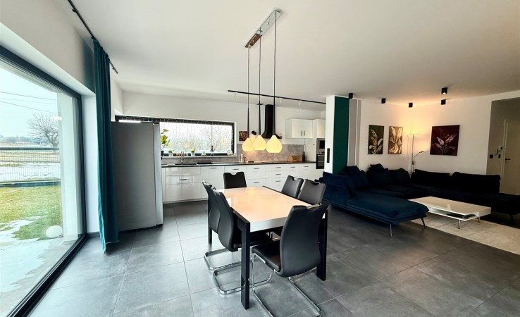 Dom został wybudowany w 2022 roku metodą tradycyjną, z użyciem materiałów najwyższej jakości: