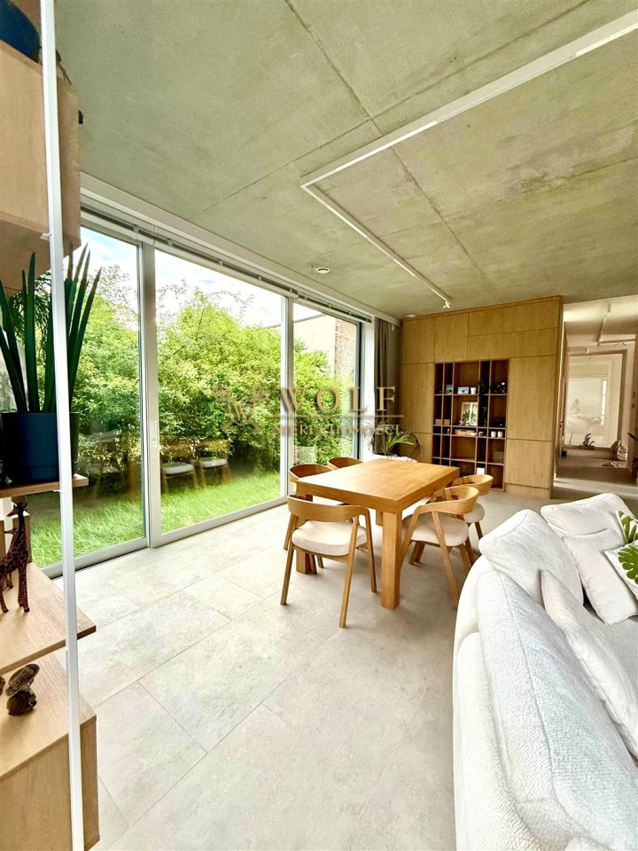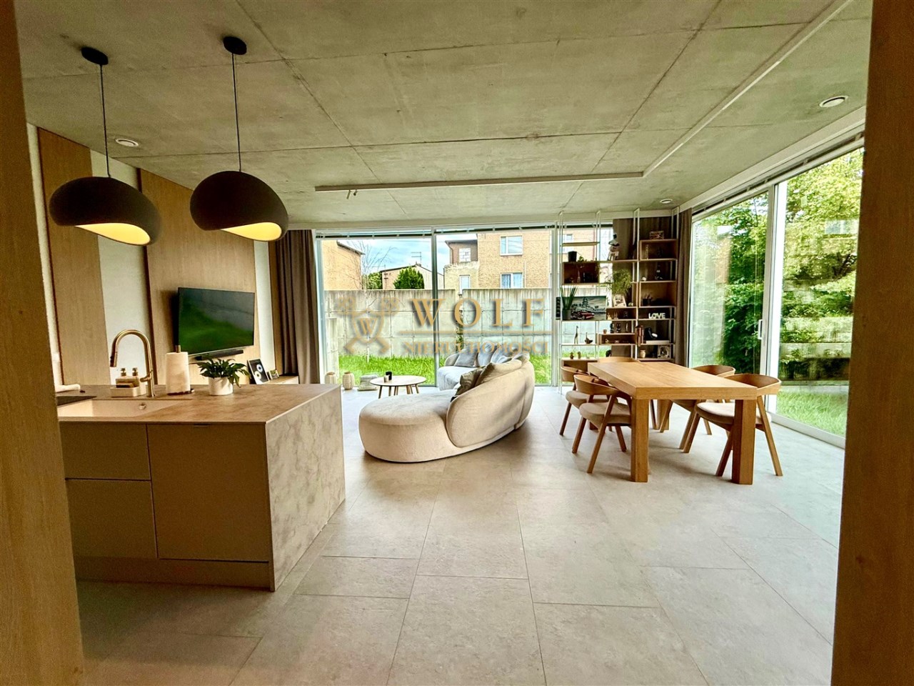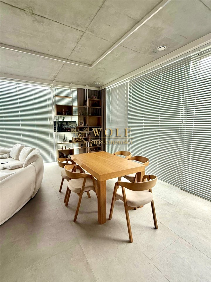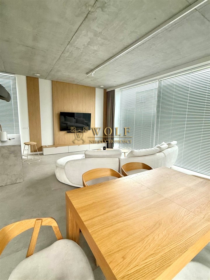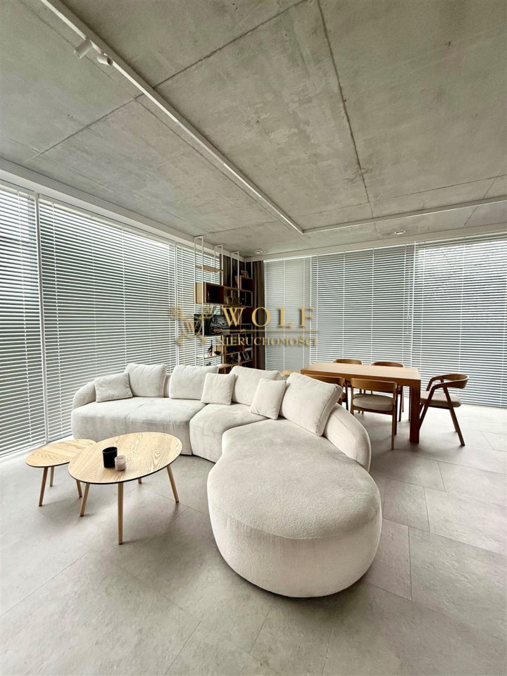 Wnętrza zostały zaprojektowane w stylu japandi. Dominują naturalne materiały, stonowana kolorystyka oraz przemyślany minimalizm, połączony z dużymi przeszkleniami.