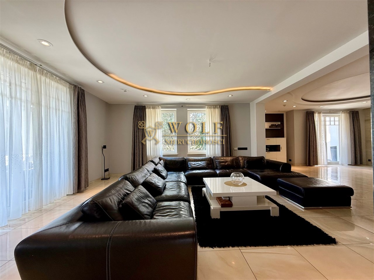 Z salonu bezpośrednie wyjście na nowoczesny, zabudowany taras z zestawem wypoczynkowym – idealne miejsce na relaks.