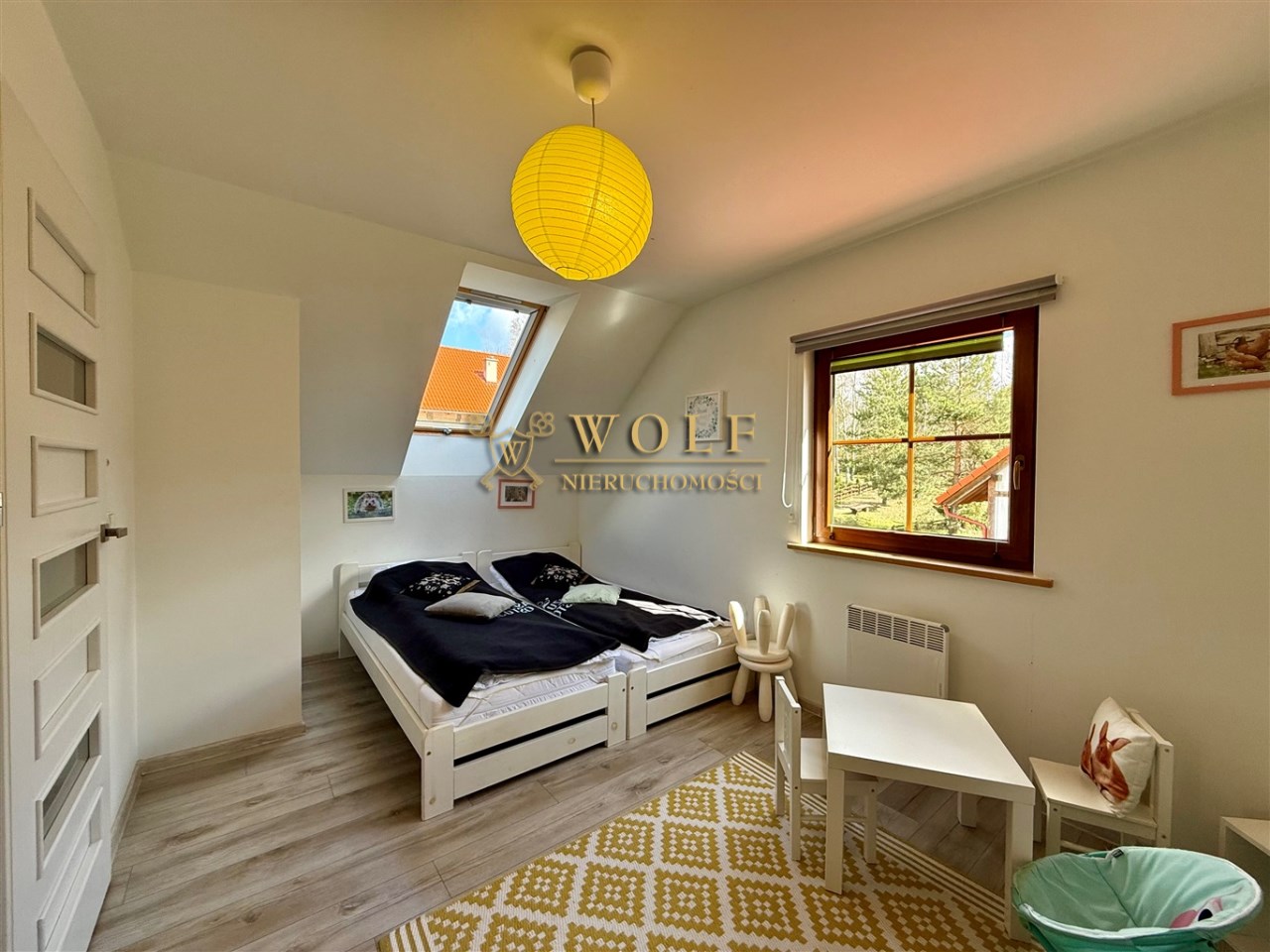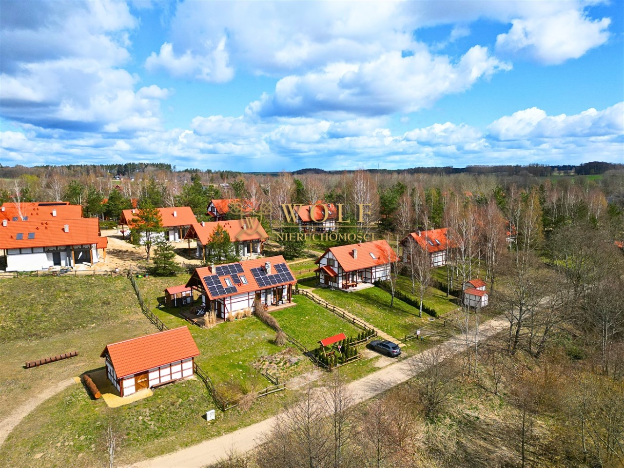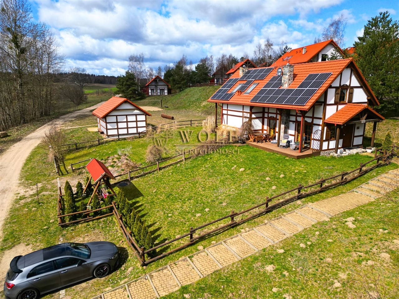Nieruchomość zlokalizowana jest z dala od miejskiego zgiełku, w spokojnej i malowniczej okolicy w pobliżu jeziora i lasów
