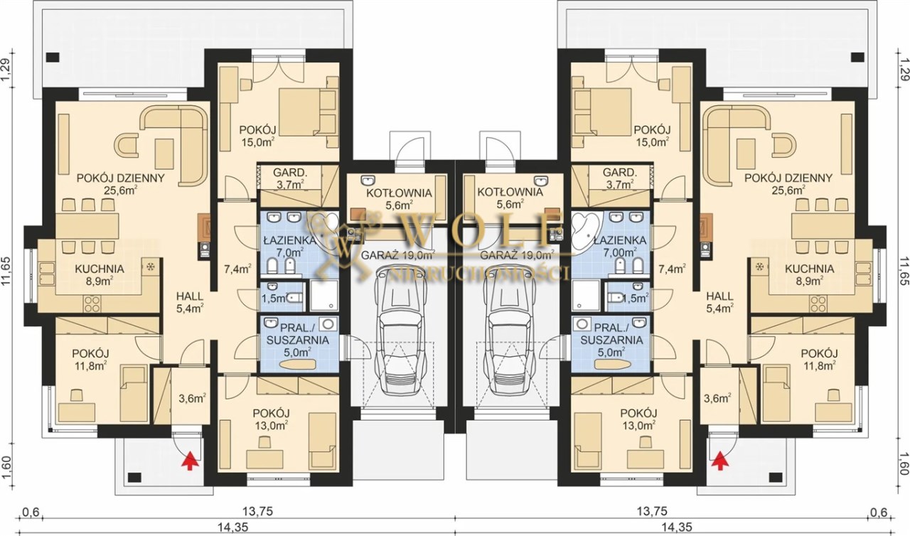 Każdy lokal posiada powierzchnię 132,6 m² oraz własną część działki.