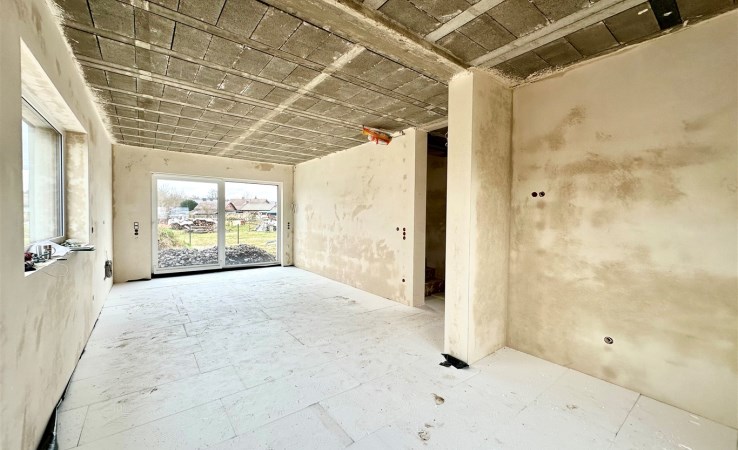 Budynek jest przygotowany pod ogrzewanie pompą ciepła lub piecem na pellet.