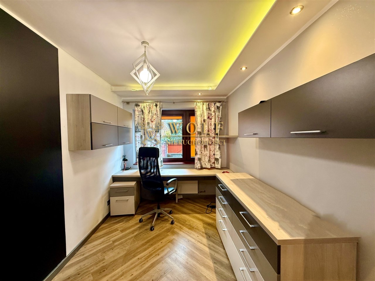 Do wynajęcia wyjątkowy, przytulny dom w zabudowie bliźniaczej o powierzchni ok 180m2, położony w samym sercu Tarnowskich Gór. Wiatrołap z miejscem na odzież wierzchnią Pokój przy wejściu – idealny na gabinet, pokój gościnny lub sypialnię Korytarz z dużą, zabudowaną szafą / garderobą Kilka schodków prowadzi do części dziennej: Salon z kominkiem i wyjściem na ogród Przestronna kuchnia z wyspą i kamiennym blatem wyposażenie: zmywarka, piekarnik, płyta indukcyjna, lodówka z zamrażarką Łazienka z kabiną prysznicową, wc, ogrzewaniem podłogowym Przedpokój z przejściem do dalszej części domu Dwa pokoje (np. dziecięce, gabinety lub pokoje gościnne) Sypialnia główna z balkonem i dużą garderobą Z sypialni przejście do pokoju typu gabinet / prywatnego pokoju do pracy Druga łazienka z wanną z hydromasażem, prysznicem, wc Pralnia z dwiema pralkami Pomieszczenie gospodarcze Ogród Ogrzewanie gazowe (nowy piec) Kominek w salonie Rolety zewnętrzne Nowe, dźwiękoszczelne okna Drewniane parapety Winylowe podłogi Meble robione na zamówienie Schody dębowe System alarmowy (instalacja przewodowa) Wideodomofon System kamer Foto-czujka Dom znajduje się w centrum Tarnowskich Gór. Kwota najmu: 4400 zł + media wg zużycia, tj.prąd, gaz, woda, śmieci Minimalny okres trwania najmu: 12 miesięcy Kaucja dwumiesięczna, tj. 8800 zł Obowiązuje najem okazjonalny