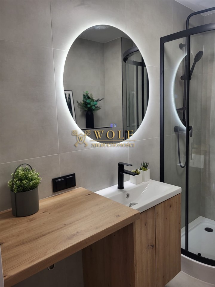 całkowicie nowa łazienka i WC (armatura, prysznic, umywalka, szafka, lustro),