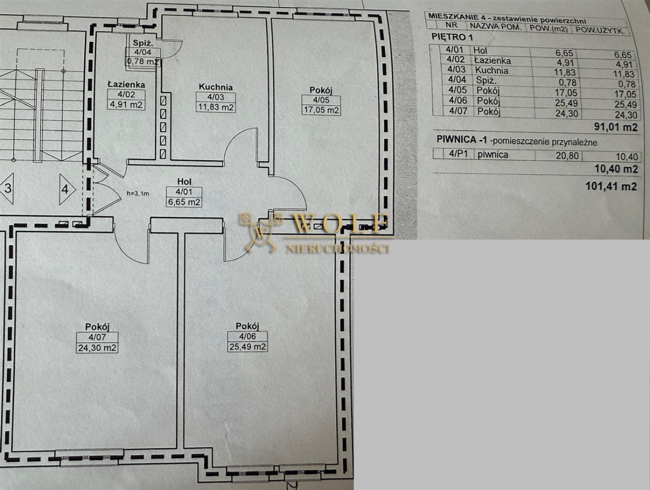 | piwnica | tak, 20,80 m² |