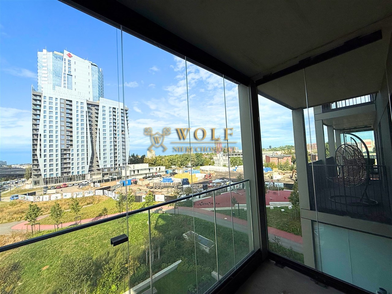 Mieszkanie wyróżnia się przestronnym panoramicznym tarasem balkonowym z oszkloną zabudową LUMON i spektakularnym widokiem na centrum miasta.