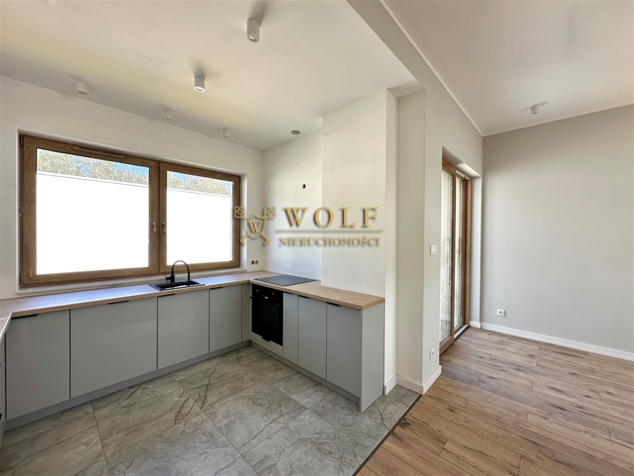 Nieruchomość jest w pełni wykończona i wyposażona, z zabudową meblową wykonaną na wymiar oraz wysokiej klasy sprzętem AGD: lodówko-zamrażarką, płytą elektryczną, piekarnikiem, pochłaniaczem i zmywarką.